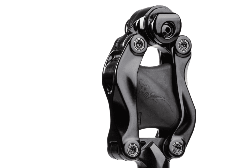This results in a natural suspension feel without being overly active, and allows for more travel without compromising pedaling position.